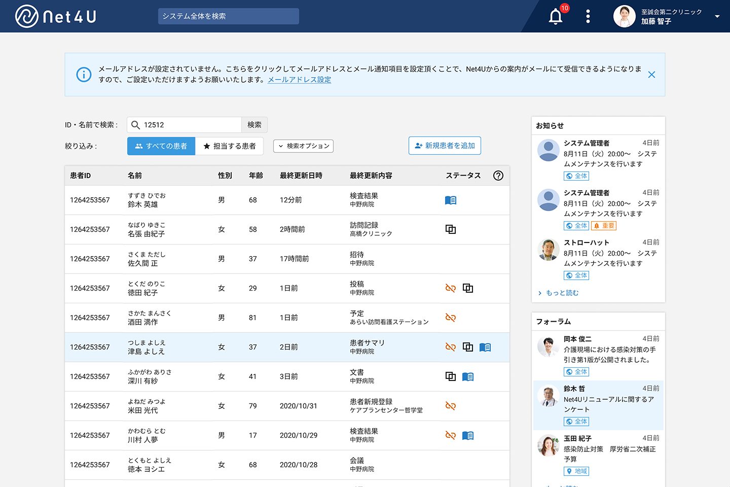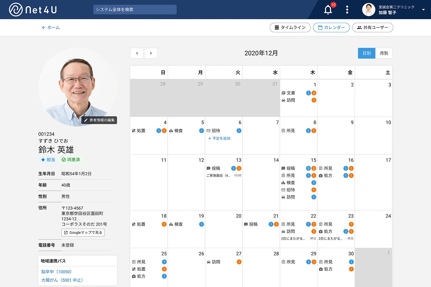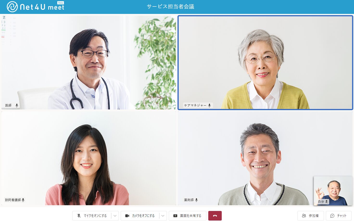 「Net4U」(ネットフォーユー)は、地域内の病院、診療所、薬局、訪問看護ステーション、地域包括支援センター、居宅介護支援事業所、各種介護サービス事業所等が患者の情報を共有することができる、地域包括ケアに対応したヘルスケアSNSです。